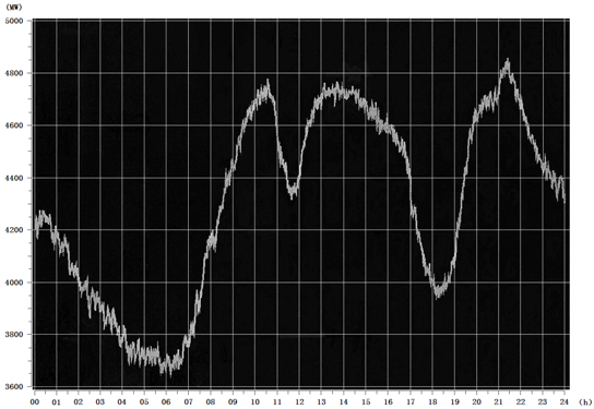 圖6為常州地區(qū)2010年最高日負荷曲線。由此可見,峰谷差達1250兆瓦,谷峰比不到0.75。尤其是20~22這個最高峰,這與此時電熱水器的使用不無關(guān)系。電網(wǎng)的峰谷差,不僅常州地區(qū),其他地區(qū)乃至世界都存在這一問題。谷電這種高級能源不能得到很好的利用,俗稱窩電,實為最大浪費。